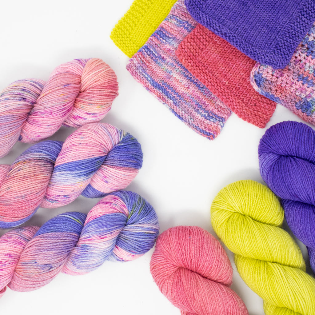 Shake up your next project by pairing this funky handpaint with a few of our favorite tonals - Paloma, Sundrop, and Catamount.