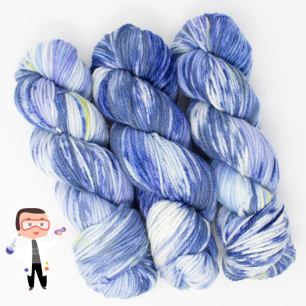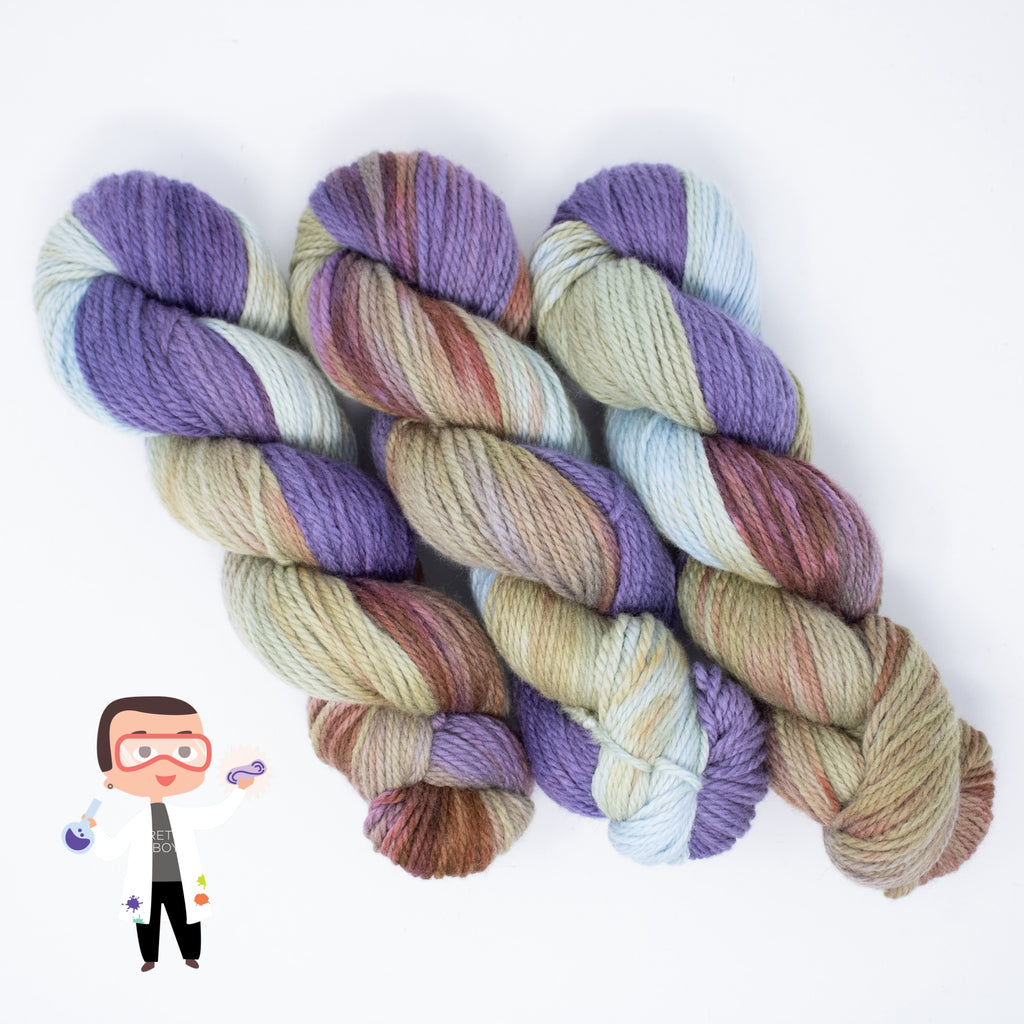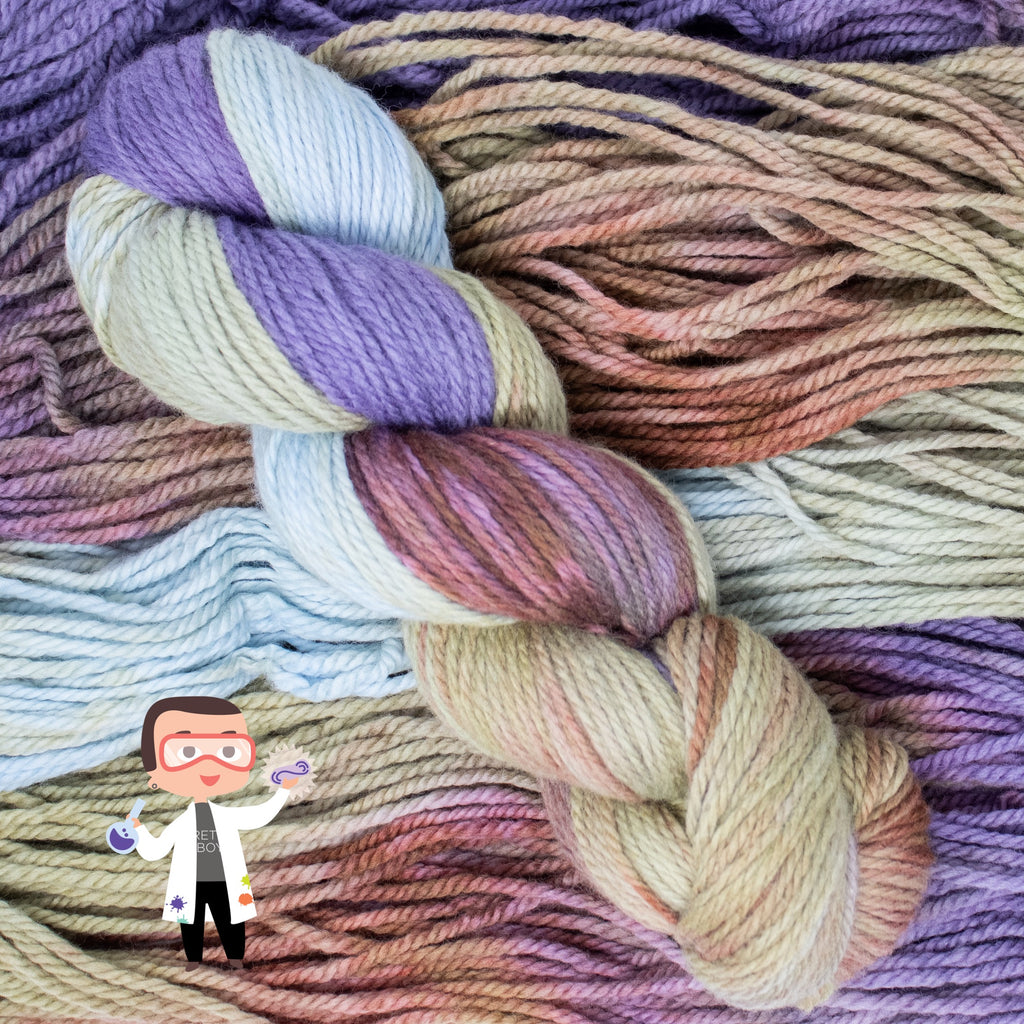 Meet one of Dax’s Science Experiments! A limited hand-painted Latta Bulky colorway straight from the dye lab. Only 3 skeins exist. When they’re gone, they’re gone!