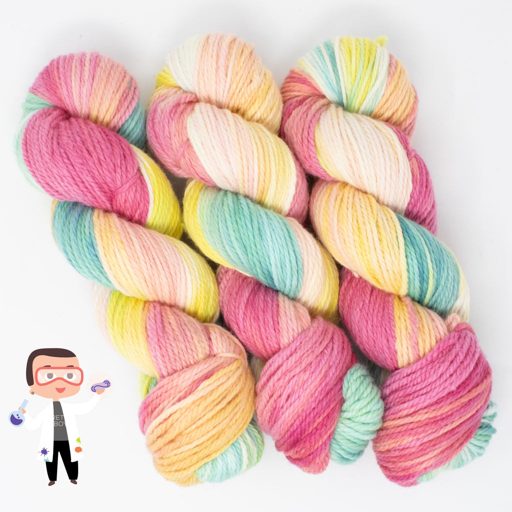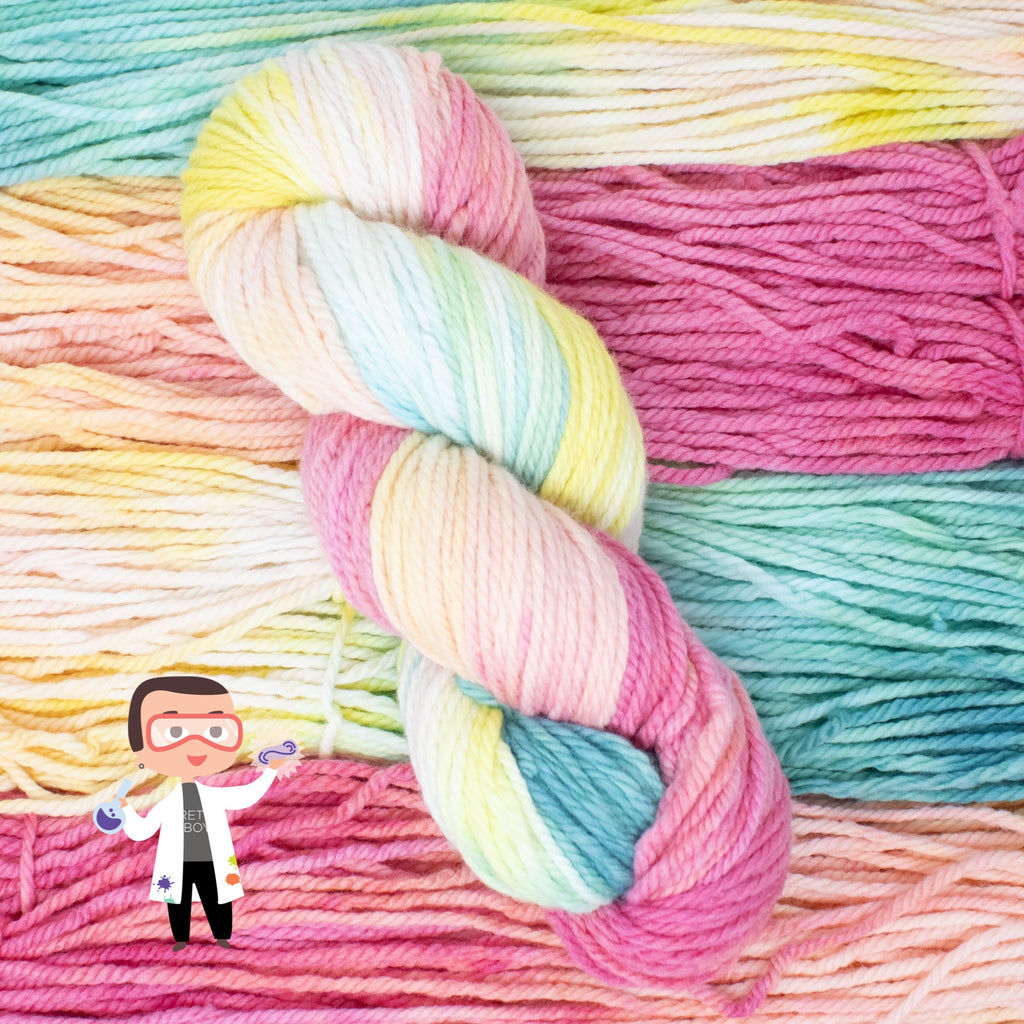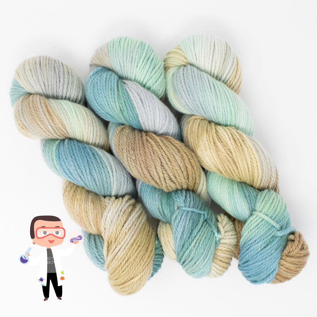 Meet one of Dax’s Science Experiments! A limited hand-painted Latta Bulky colorway straight from the dye lab. Only 3 skeins exist. When they’re gone, they’re gone!