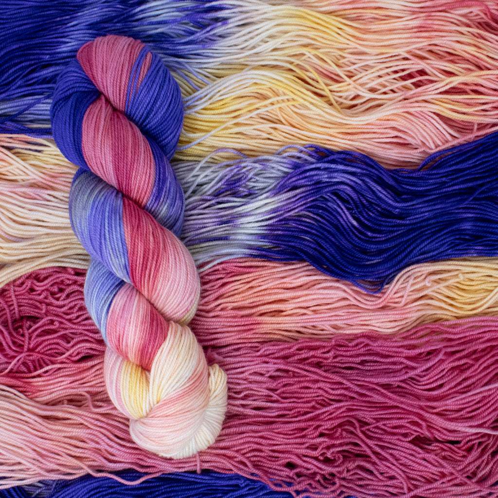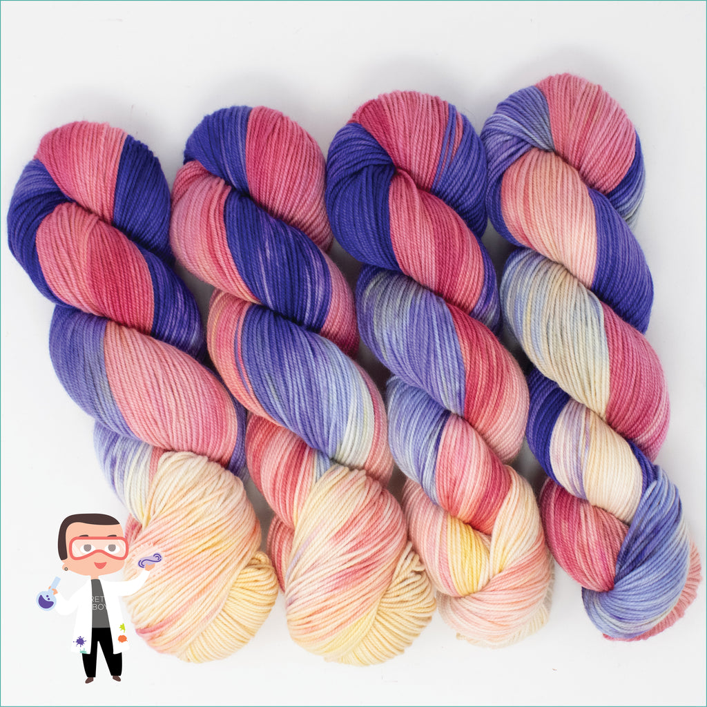 Meet one of Dax’s Science Experiments! A limited hand-painted Latta colorway straight from the dye lab. Only 4 skeins exist. When they’re gone, they’re gone!