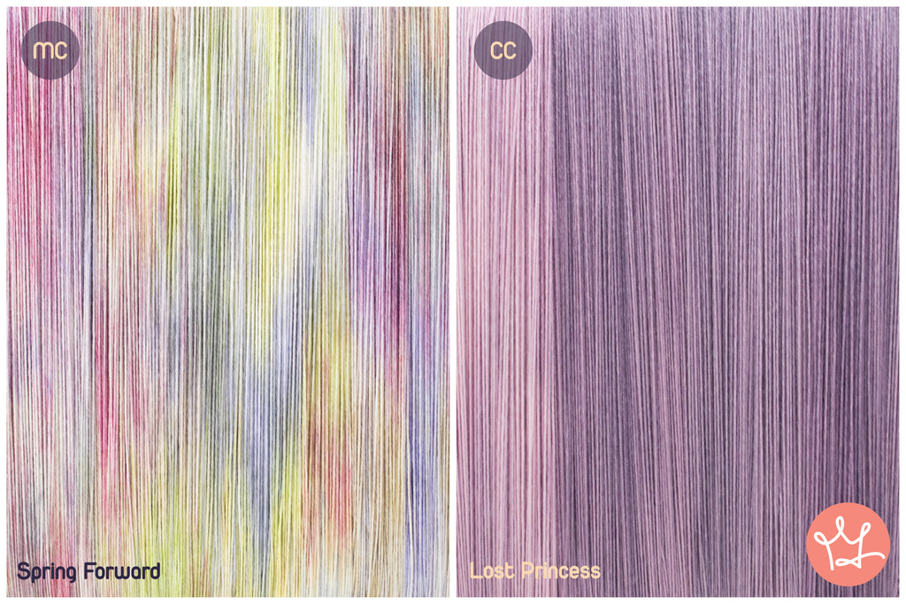 Light pastel washes of purple, pink, green and yellow make this colorway sing spring.